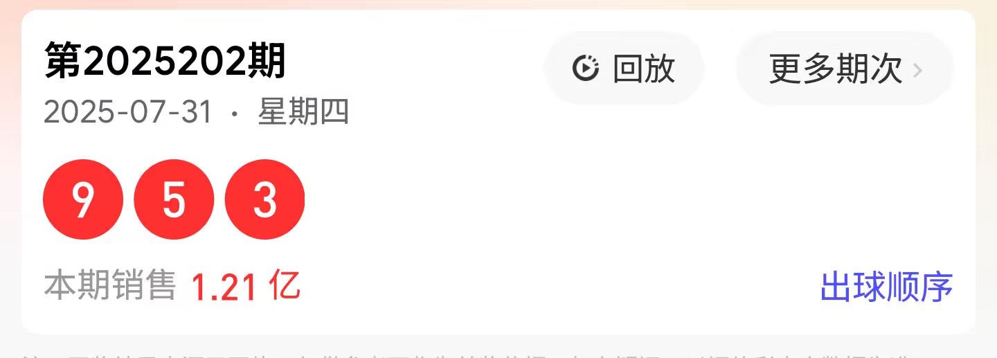 让我们先简单回顾上期开奖,然后开始今天的号码分析与推荐。福彩2025202期开出奖号为953,和值17,两大一小,3个奇数的组六形态号码。近期的开奖号十分均衡,全顺组合,对子与组六交替出现。继全双之后开出了全单,相信很多人都有所收获,这也让我们的分析有了更好的参考范围。