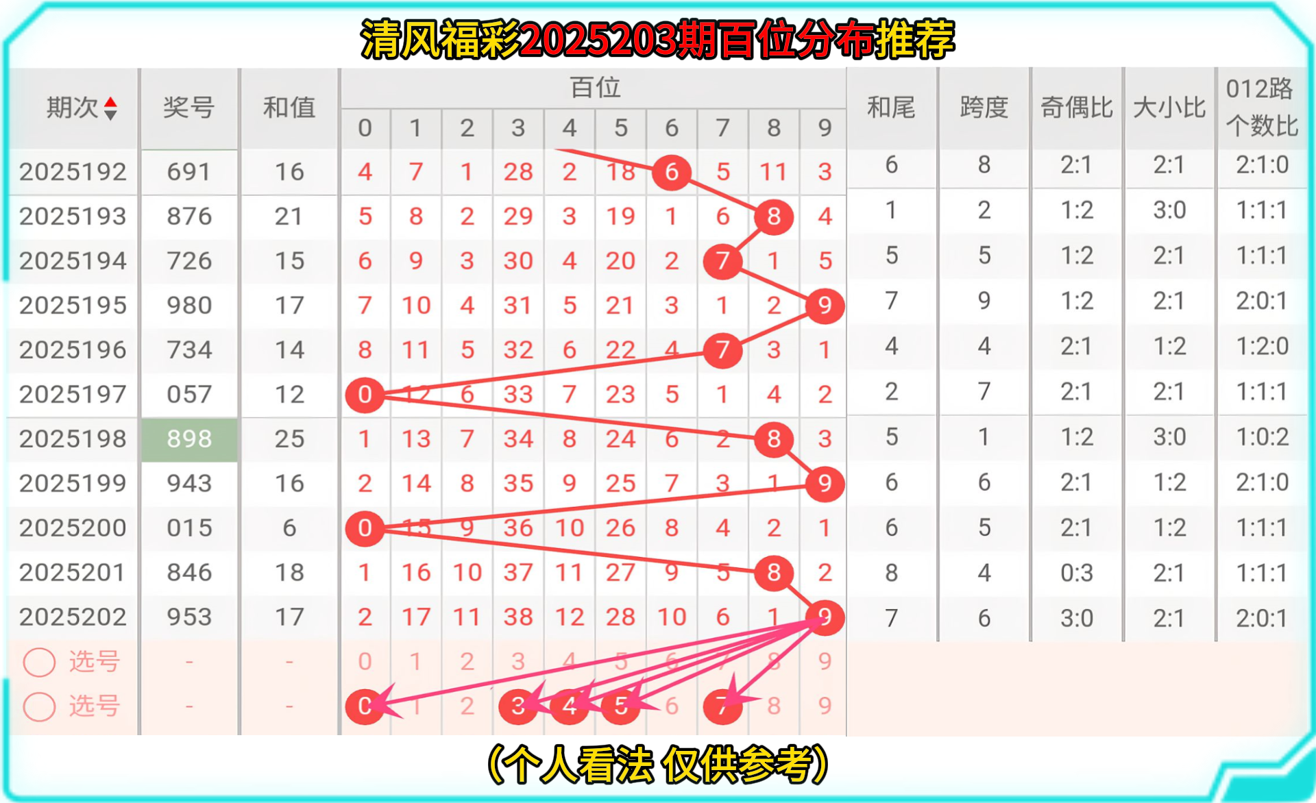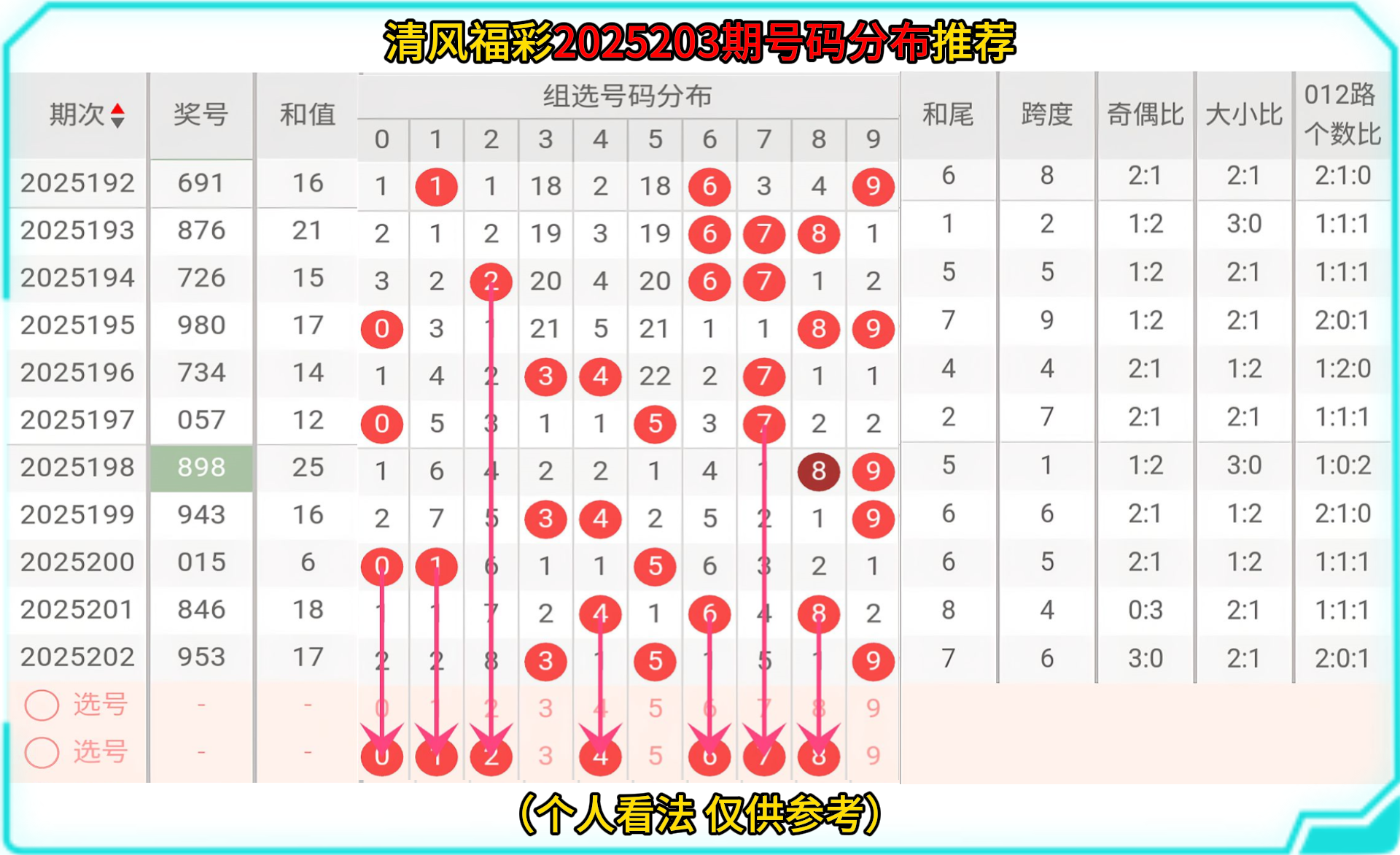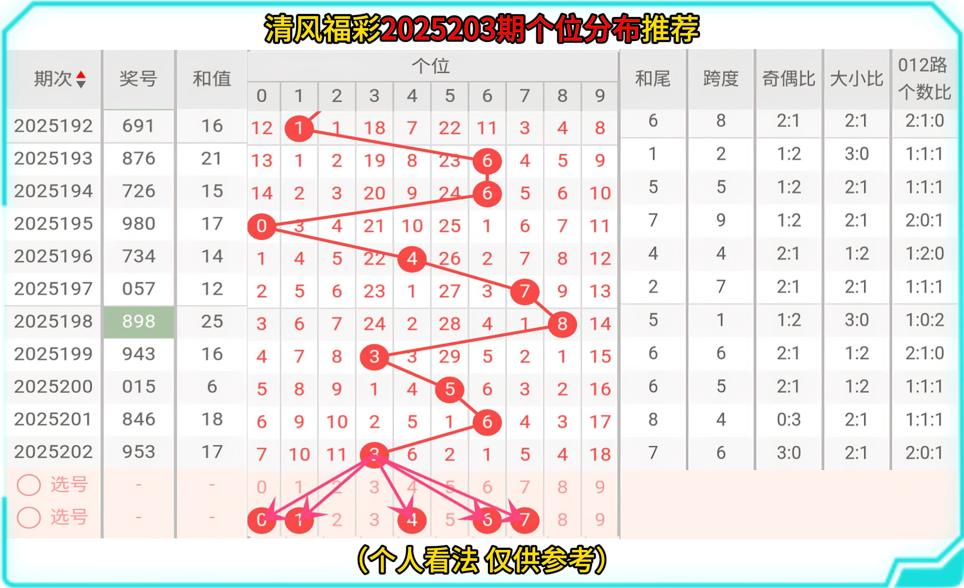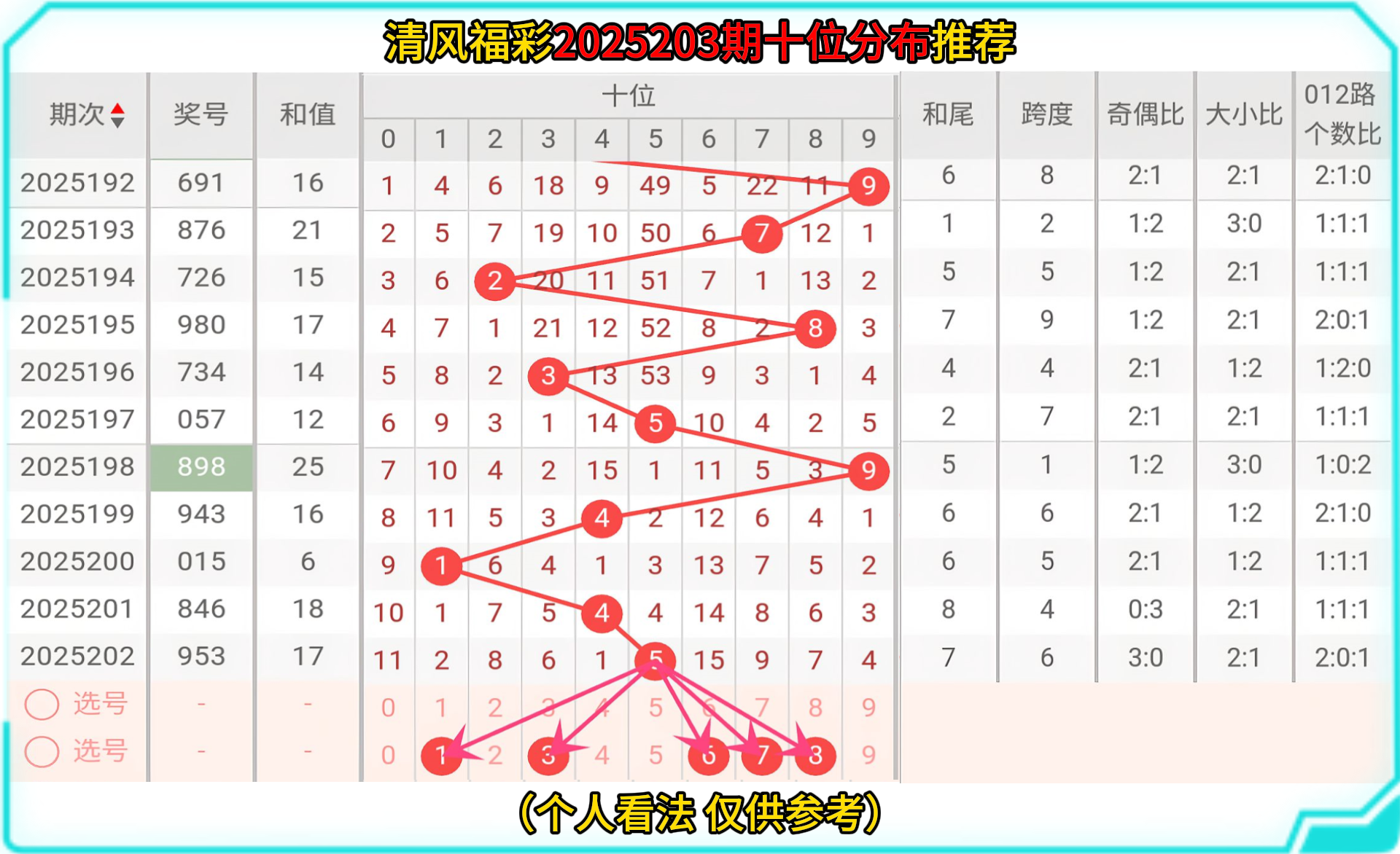 那接下来让我们一起走进2025203的选号分析: