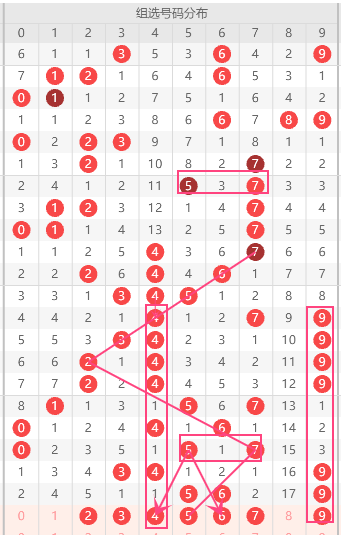 结合近10期开奖结果分析,号码:4-9出现了5次以上,表现较为活跃,根据热码继续走热的特性,可将它们列为热号重点,本期可以关注继续出球。再结合组选走势图分析值得重点关注!综合以上冷热码走势:2-3-4-5-6-7-9