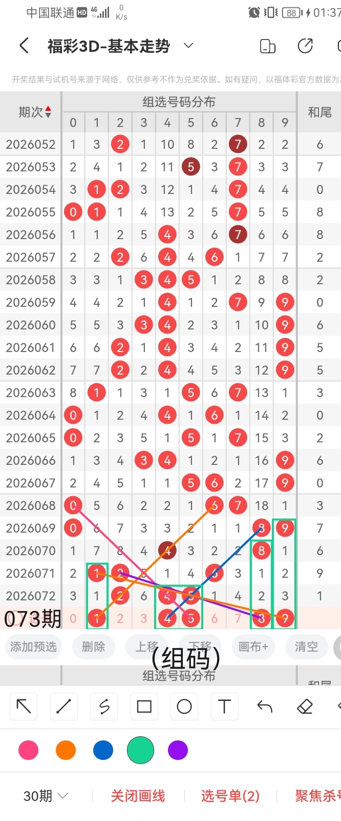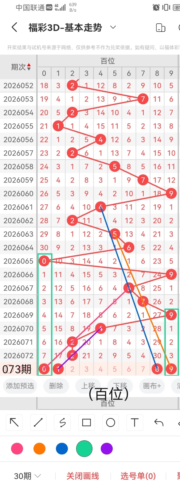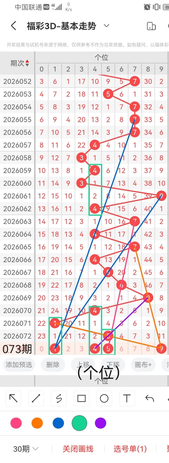 通过以上对上期的简单回顾,下面进入2026073期(下面简称本期)的选号分析: