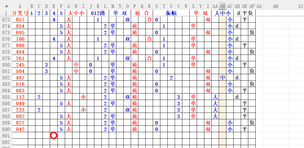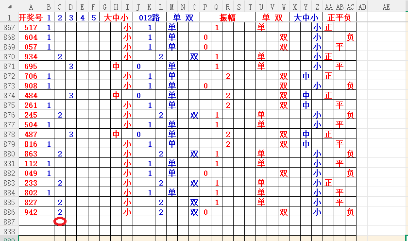 如上图56,大中小分析,中号3456出胆码,最低1个胆码,重点34