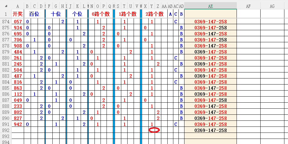 如上图2,012路分析01路尾走比较好,关注0369147尾;
