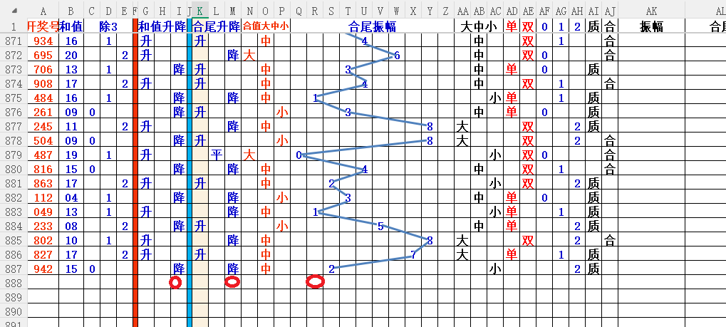 和尾:开奖号码和值的个位数,范围为0-9。示例:和值15的和尾为5。