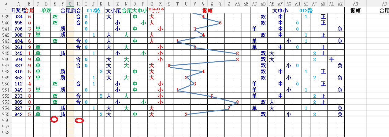 如上图56,012路分析。0369路号出胆,039中出,重点39胆码