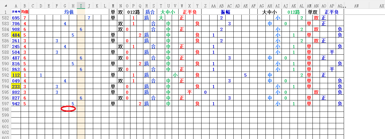 均值:就是开奖号每各数的总和除3,然后得到的余数,如果不够整除可以+1,-1,直到被整除得的数就是均值