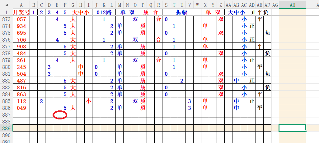 如上图56,大中小分析,中号3456出胆码,最低1个胆码,重点34