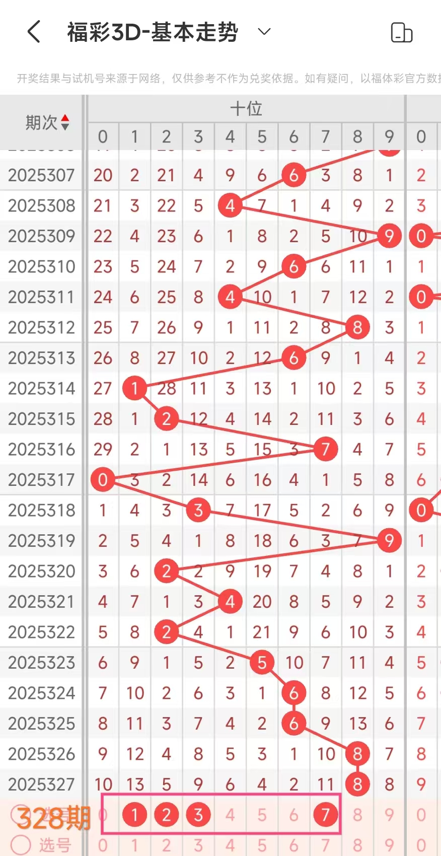 2、当十位开出8后下期开出:668,经统计0号出0次、1号出现0次、2号出现0次、3号出现0次、4号出现0次、5号出0次、6号出现2次、7号出现0次、8号出现1次、9号出现0次。观察发现68号趋势好,本期可以考虑。