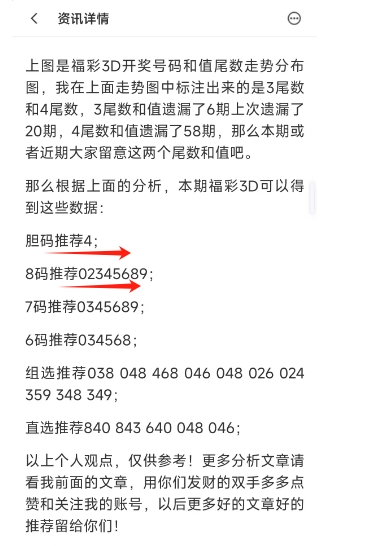上图是上期福彩3D号码分析文章截图,最后推荐胆码猜对,8码也猜对。