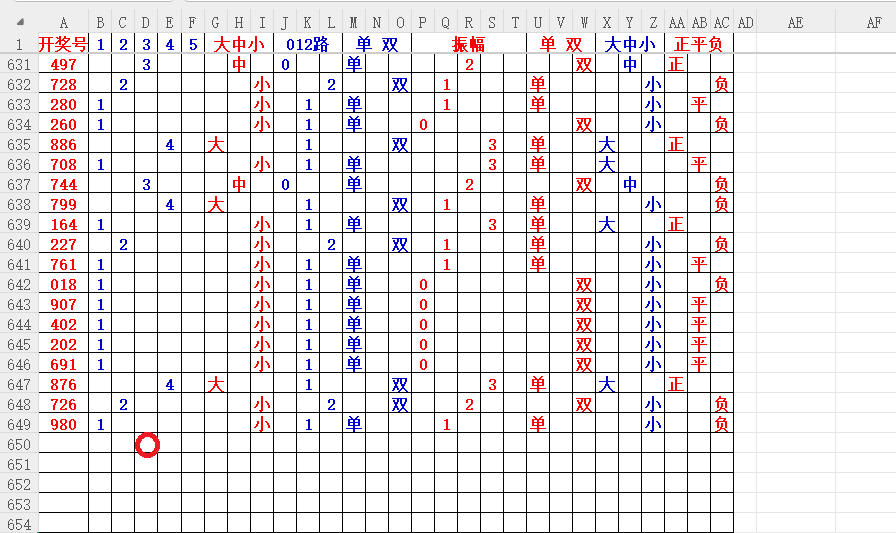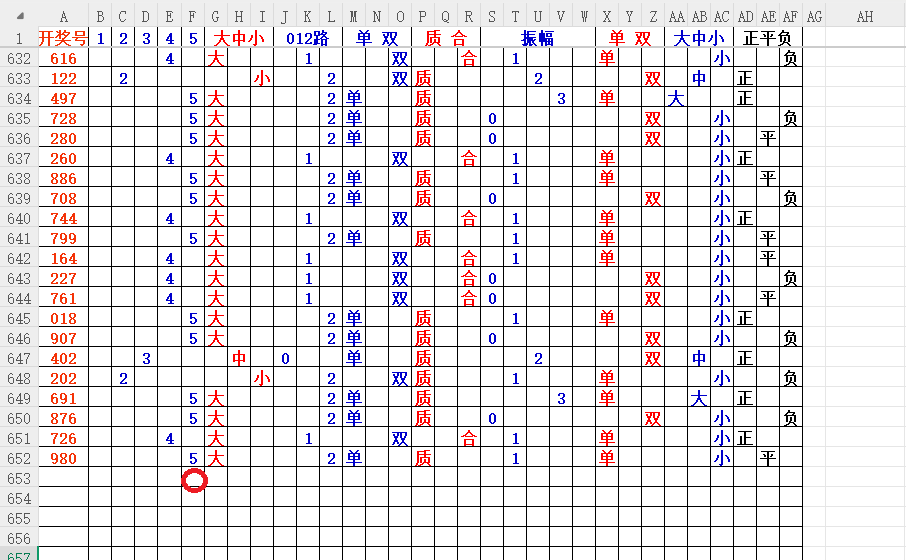 如上图56,大中小分析,中号3456出胆码,最低1个胆码,重点34