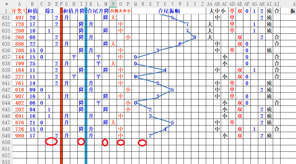 升降平:升就是本期和值大小比上期和值大小大,小于就是降,如果一样就是平,和尾也是一样。