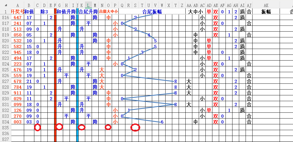 如上图3,和值升降平分析,和值升概率大,大于03和值