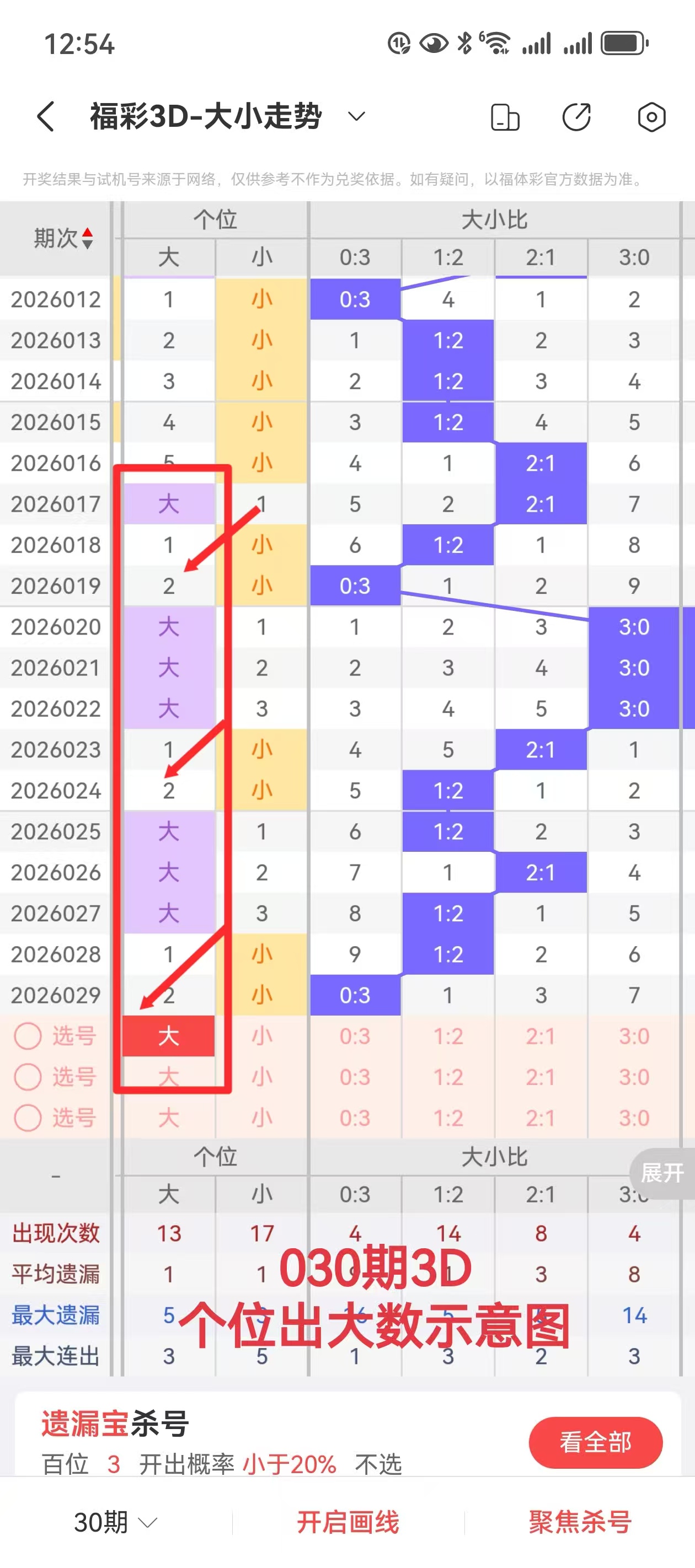 -位出--连出两期就转向-数,近期连续表现3次,判断本期-位出大数。