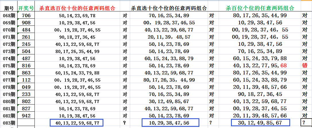 杀直选定位两码组合,连续好多天正确
