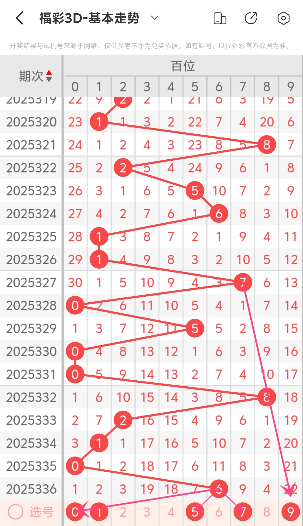 下面是福彩3D的百位走势图分析