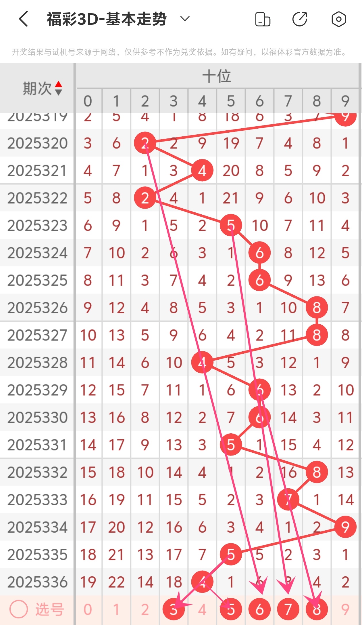 下面是福彩3D的十位走势图分析