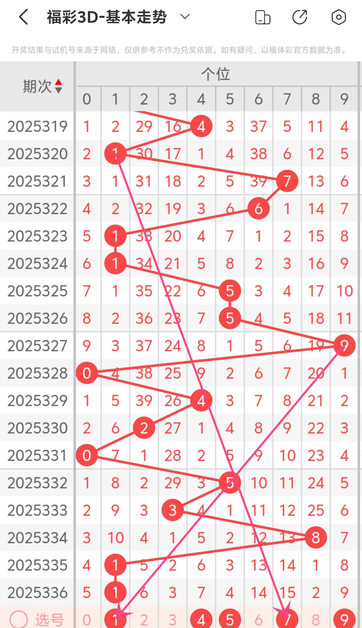 下面是福彩3D的个位走势图分析