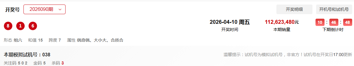福彩3D第091期:上期粉丝福利通杀一码,定位杀两码命中已连续四天