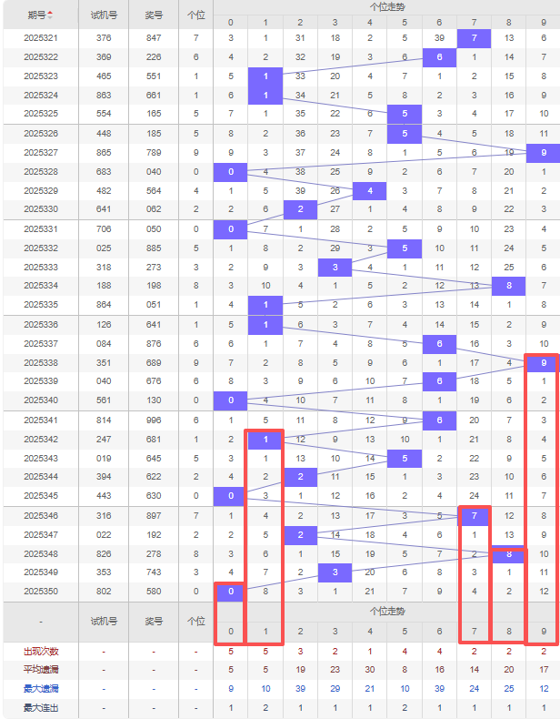 上期个位:0,近10期个位出号:6 1 5 2 0 7 2 8 3 0。最近10期大小变化分别:大小大小小大小大小小,奇偶变化分别:偶奇奇偶偶奇偶偶奇偶,质合变化分别:合质质质合质质合质合,根据近10期规律本期综上所述个位出号推荐5个号码:0 1 7 8 9。