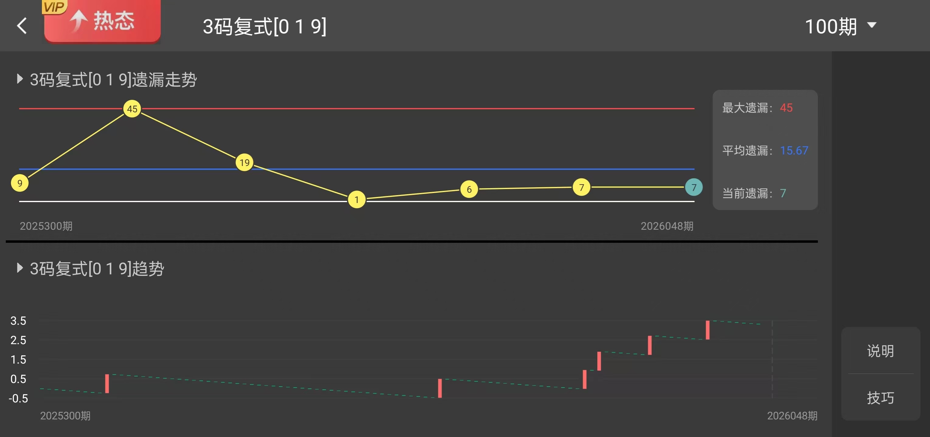 中位数6是近期热号(出现3次),且接近平均数5.83,说明“6”是当前数字分布的核心枢纽。奖号组合往往包含一个接近中位数的数字(如6),再搭配两个边缘数字(如1和9),形成“中位+两端”的平衡结构。例如2026048的“6,1,2”中6为中位,1和2为小数端;2026047的“9,3,6”中6为中位,9为大数端,3为小数端。