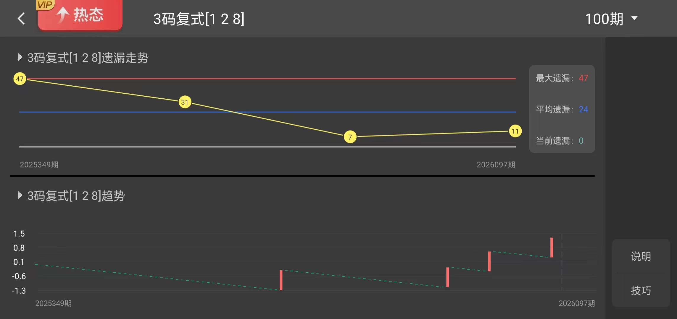 跨度走向:近 6 期以中大跨度为主,仅少数期数开出中小跨度,上期再次开出中大跨度,中大跨度已多期热出,下期跨度大概率出现明显收缩,偏向中小跨度区间运行,中大跨度持续热出的概率偏低。