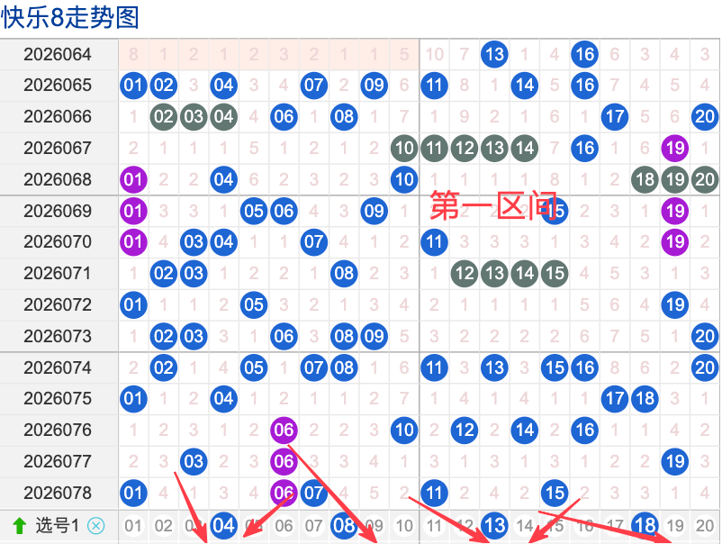 上期一区开5奖号(01.06.07.11.15)上期回顾一区开5个奖号一区间的奖号在上期呈现了递增的趋势,本期先来看号码04具有一定的间歇性,近期比如有时会间隔3到5期次出现,整体出现频率还是很稳定,号码08活跃度近期较热。有一定的间歇性,间隔上来说的话还是很稳定的,整体走势有一定的波动性没有明显的冷热趋势变化,出现的频次近期比较热。号码13活跃度相对还是很稳定,近期没有明显的连续出现态势,偶尔间隔多期会出现一次整体表现较热。