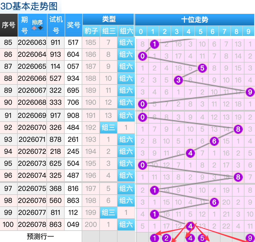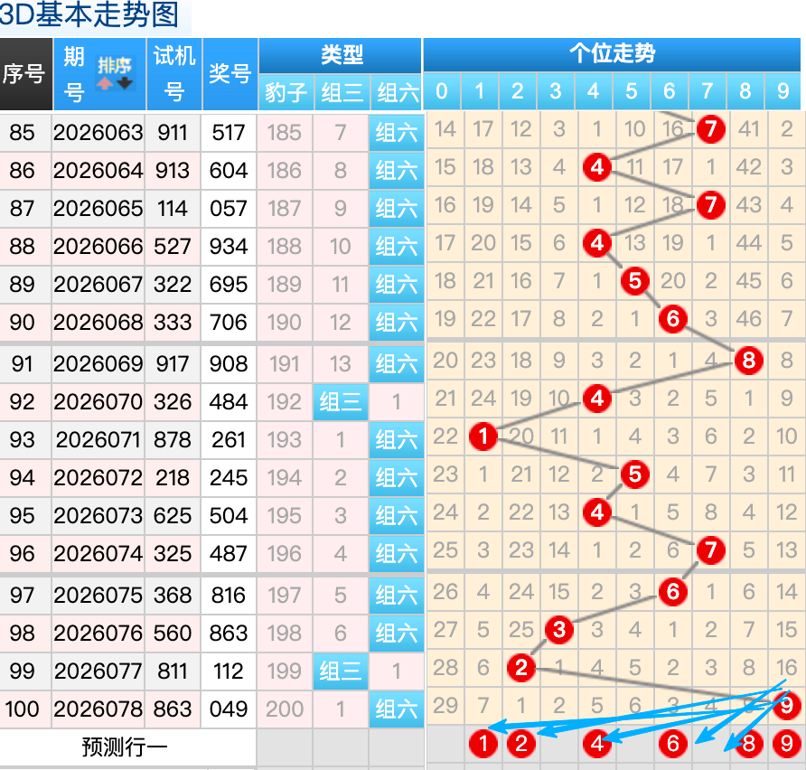 上期3D十位开出的奖号是4号,上期在十位上4号球这个号码是一个3跨回补号码的落位点,本期来看2号在十位上要注意这个号码是有机会继续走出冷码的落位趋势这里的号码回补的落位形态注意防守就好,再来5号球这个点位注意防守走出常搭配的落位趋势。9号球这个号码是常搭配的落位码回补要注意参考。4号球要注意走出重码的概率