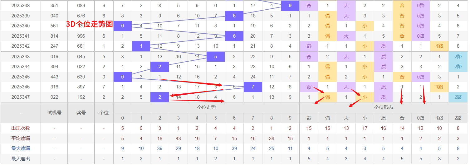 福彩3D个位分析:第2025347期个位开出号码2于小偶数前端,从以上个位走势图中可以看出近100期的大小比约为51:49奇偶比约为54:46大小奇偶数据上有点差异有需求但不是太明显,不太好看这时就要借助连线走势和遗漏数据来帮助我们缩水号码。上期个位落号“2”小偶数2路号码球,号码开出了5振幅,连续多期的小振必被大振幅取代幅符合我们的预期,那么本期我们在个位考虑振幅走势走前依然要转变思路考虑大振幅,具体考虑(2-6)个振幅是我们主要的方向,那么在对个位落号情况进行系统的分析时我们可以明显的看到个位号码走势呈现大范围震荡,尤其是在号码的落位特点上表现的尤为突出,那么本期我们在个位分析时就要注意号码的风险,避免出现踏空。近期3D个位走势中,数字3和8持续低温,遗漏值已进入关注区间,历史数据显示此类冷态往往在周期性回调中迎来反弹,需警惕其突然解冻回补的可能性。与此同时,数字1作为当前热号,近期开出频率较高且走势集中,呈现出较强的持续性与惯性,短期内仍有热势延续的迹象。综合来看,个位需同时防范“冷号反弹”与“热号续热”并存的格局——尤其是热号1在形成强势轨迹的背景下,可能压制冷号回补节奏,但也需注意冷热交替时可能出现的转折点。在跟踪热号走势的同时,对冷号3和8设置观察周期,因此福彩3D第2025348期个位看好13468。本文由一起彩钱是生命动力所著,请勿转载
