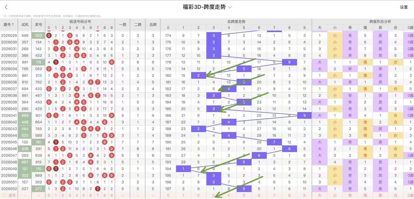 2026053期福彩3D跨度走势图如下: