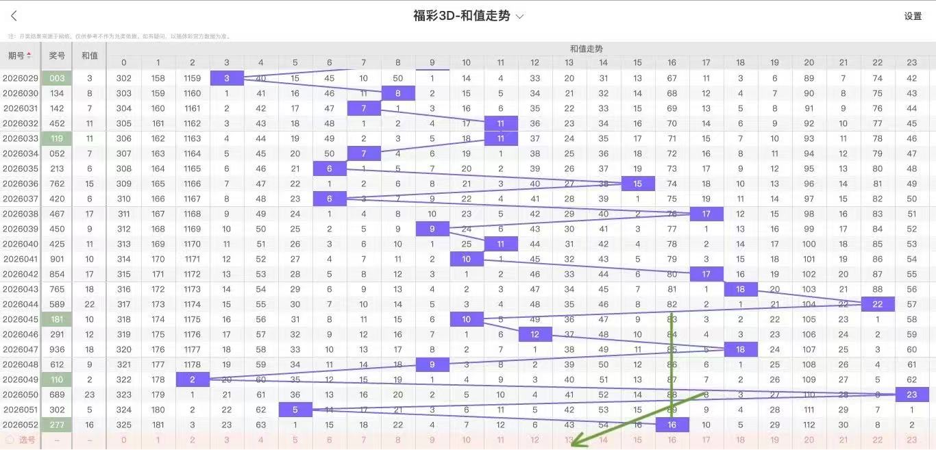 2026053期福彩3D和值走势图如下: