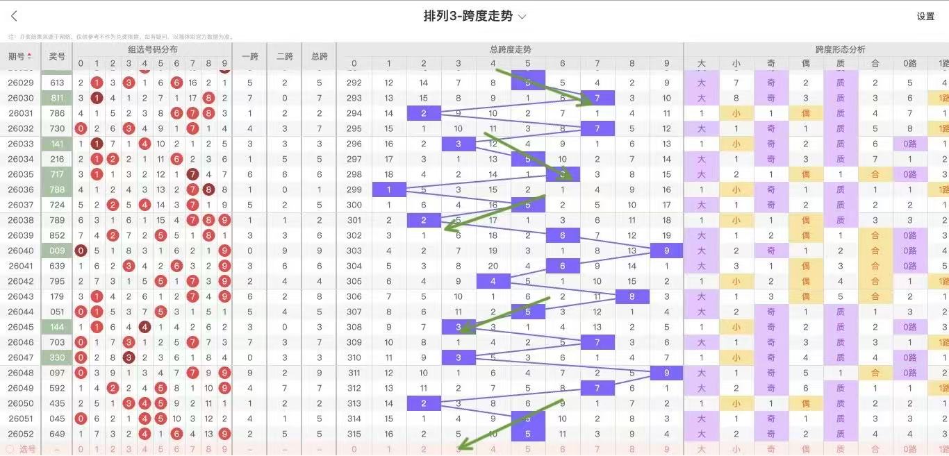 根据走势对跨度观察统计得到以下分析结果: