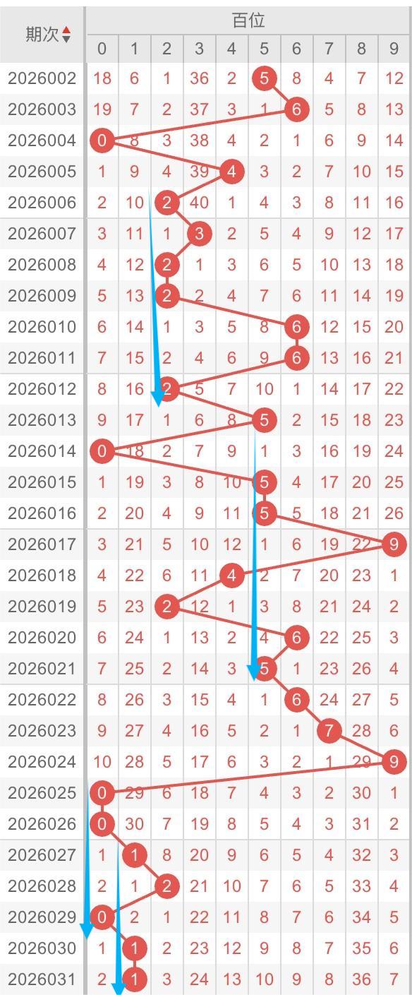 以近30期百位的走势形态分析:重复形态交替出现。例如:数字0/1/2/5重复开出,数字5-6-7/0-1-2/斜连开出。本期重点关注:数字1重复开出,同时关注数1-9跨度开出。个人分析,仅供参考。