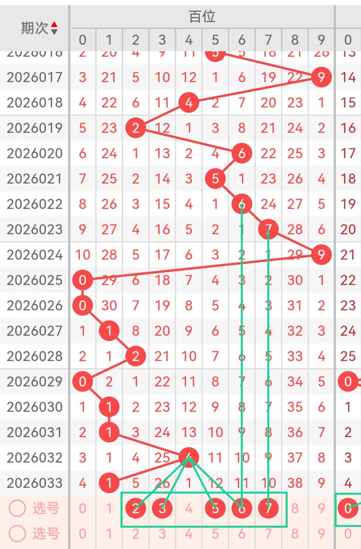 上期十位开出1,本期重点关注2、5、7,数字2作为2路温号,近30期仅开出6次,处于冷热过渡区间,上期全奇组合后,偶数2回补概率提升,且2为小号中位,能平衡大小分布;数字5是中号核心,0路号码,近5期百位断档,符合冷号回补规律,搭配奇偶均衡走势,5作为奇数码可填补奇数空缺,同时衔接大小区间;数字7为大号低位,1路号码,近30期开出1次,走势平稳,上期跨度8偏大,7能有效缩小跨度范围,提升号码合理性。备用号3和6均为0路号,3是小号高位,近26期百位未出,6是中号高位,填补中号断档空白,可防范0路号码集中回补。
