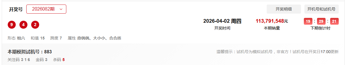 福彩3D第083期:上期通杀一码,定位杀一码连续四天命中