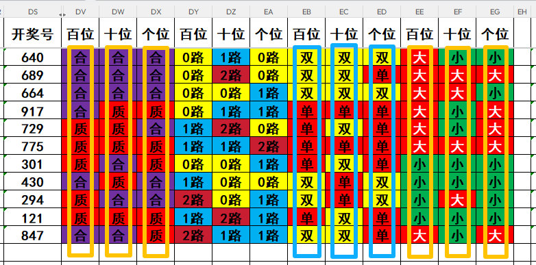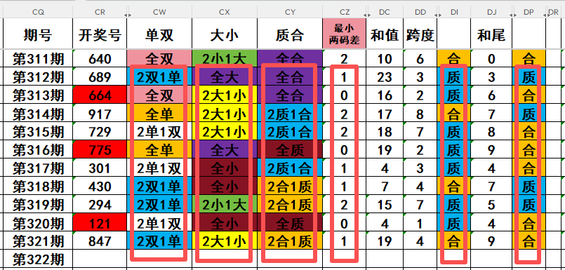 2,目前开奖号十位号码球11天当中,质数(12357)开出了5次,合数(04689)开出了6次,本期重点关注开奖号十位号码球质数的回补!