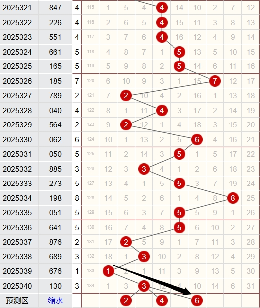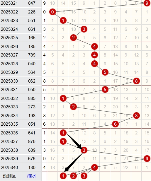 上期跨度为3,近5期跨度开出情况:第25340期开出3,属于奇数,0路号码,木属性;第25336期开出5,属于奇数,2路号码,土属性;第25337期开出2,属于偶数,2路号码,火属性;第25338期开出3,属于奇数,0路号码,木属性;第25339期开出1,属于奇数,1路号码,水属性;
