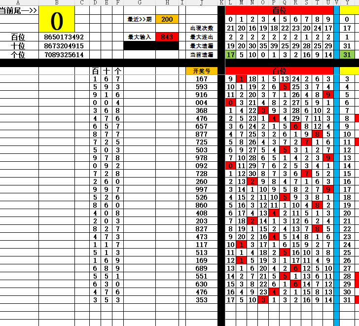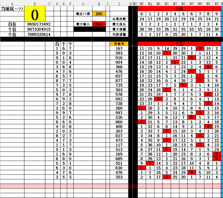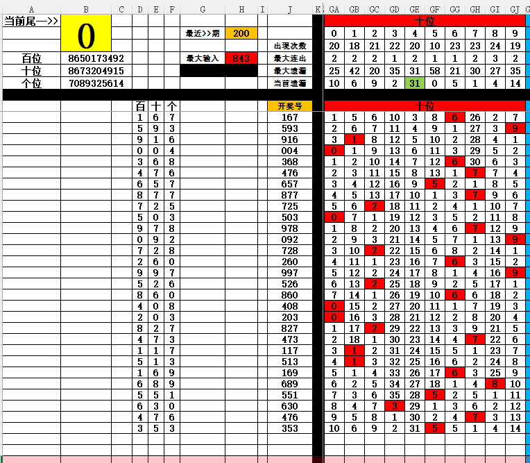 2:十位排序(近100期和尾0跟随开奖号十位0-9个数排序)为8673204915十位4振幅1已经快接近最大遗漏优先考虑4 其次6,7,8