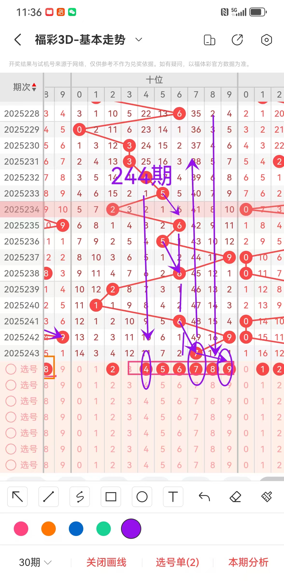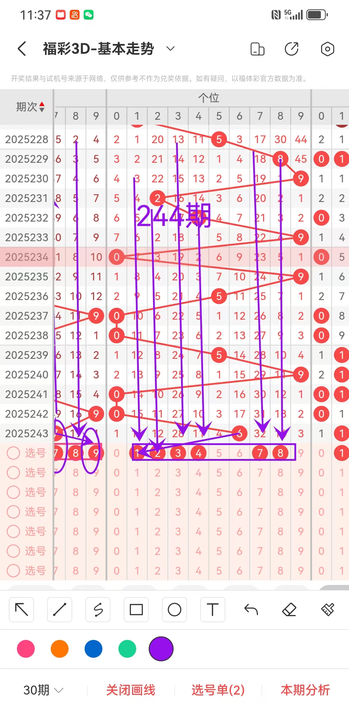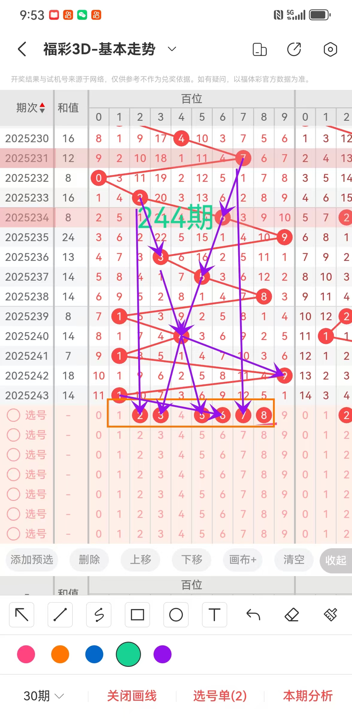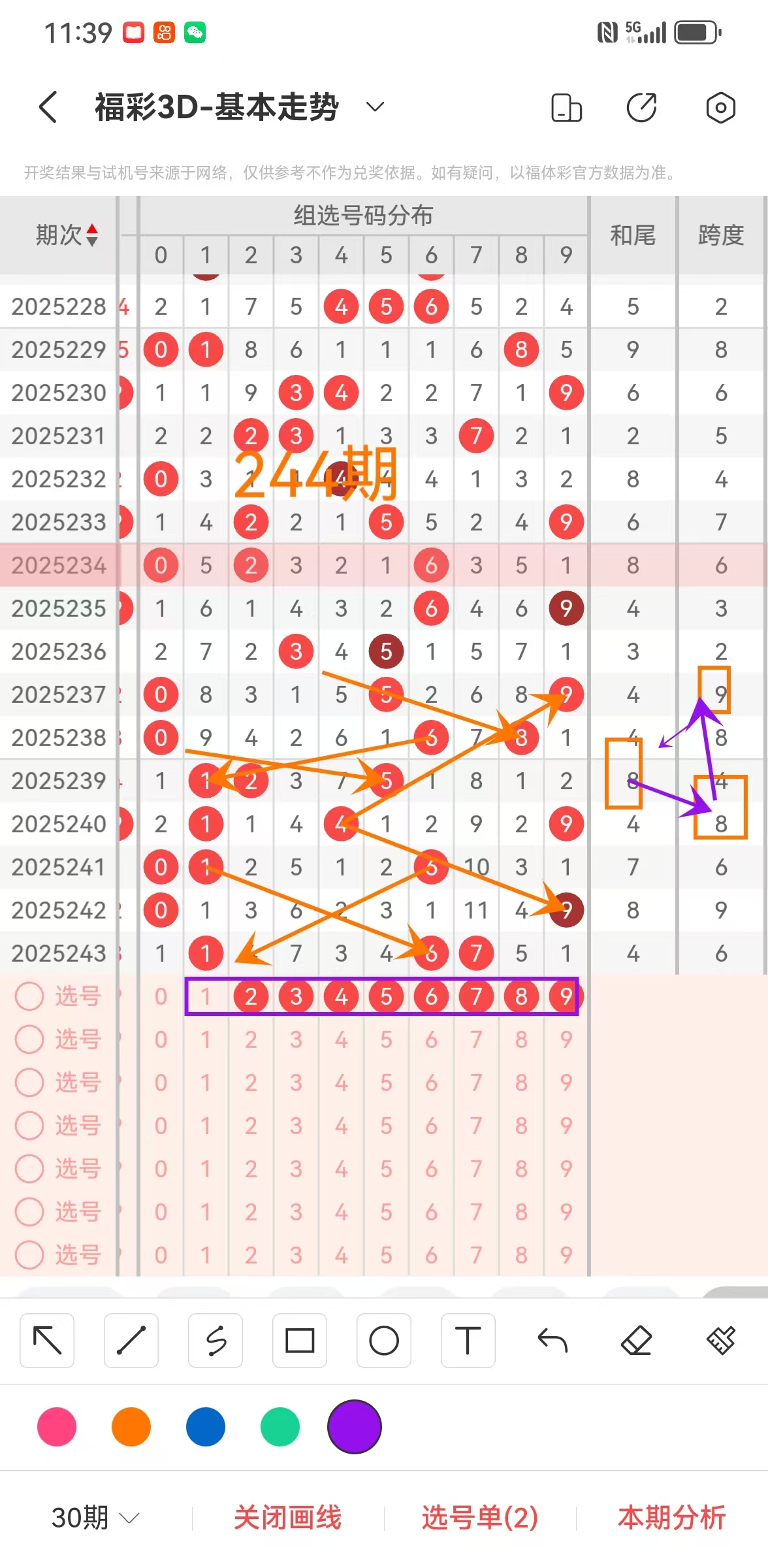 以上分析数据为:福彩3D第244期,啤酒哥本人推理和18年购彩经验所得,助力您选号
