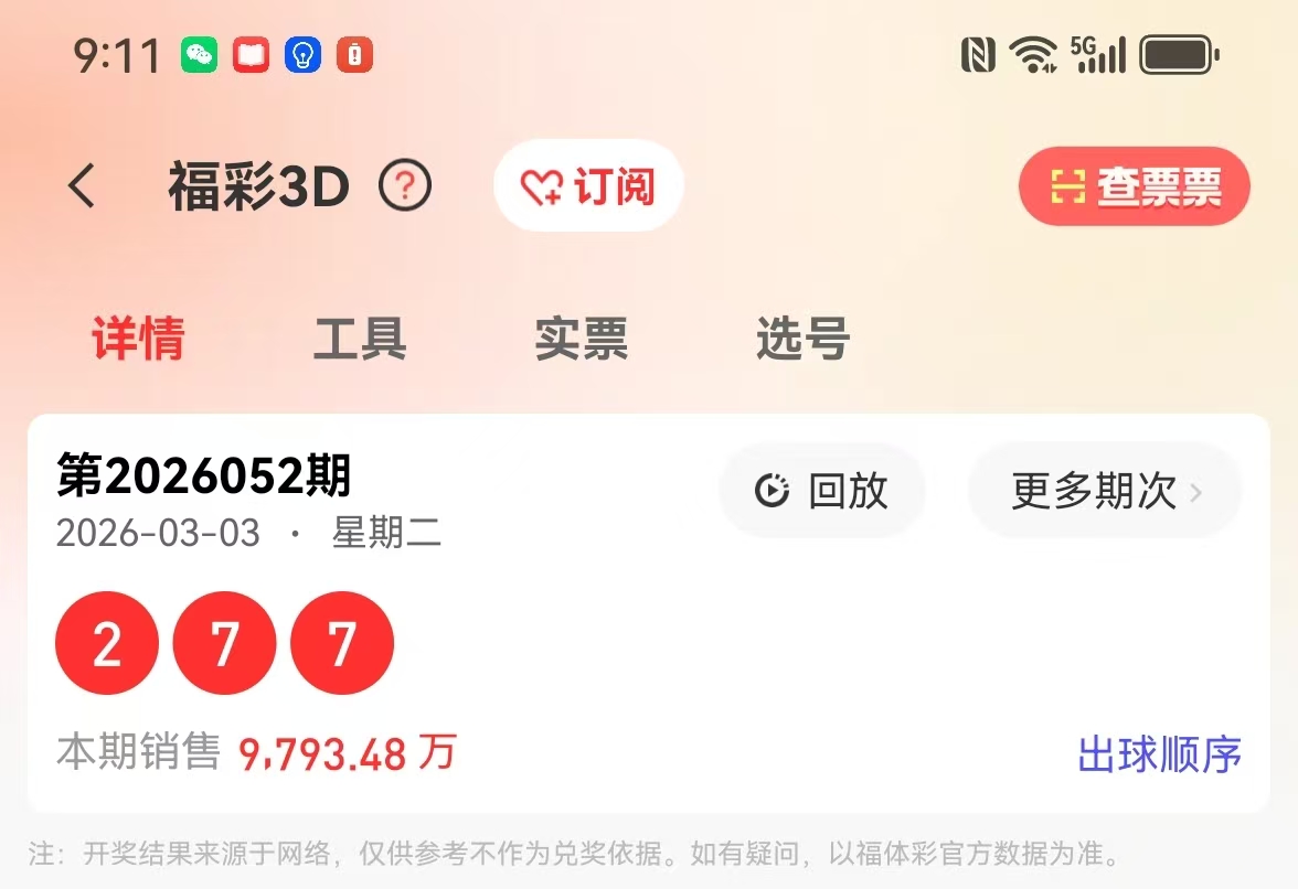 福彩3D2026第052期回顾:
