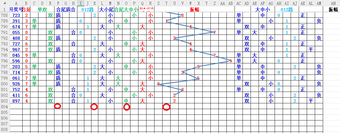 如上图56,012路分析。0369路号出胆,039中出,重点39胆码