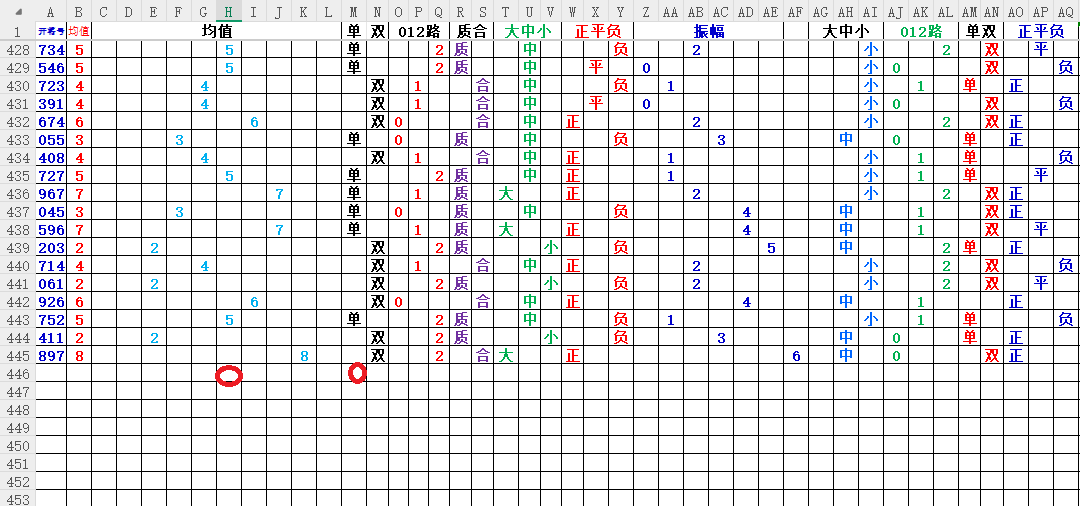 均值:就是开奖号每各数的总和除3,然后得到的余数,如果不够整除可以+1,-1,直到被整除得的数就是均值