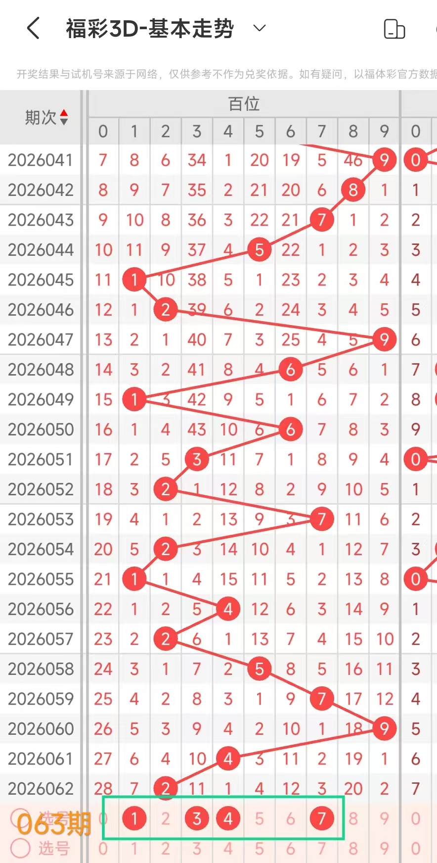 4、通过上述我们得到这期百十个位分析号码:百位1567,十位2、个位123