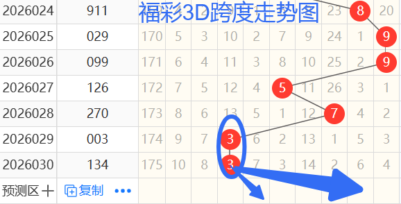 依次是95733跨度,按照路数转换关系来看,那么跨度我们暂定2 4 6 8跨 ,本期个人比较看好4 8 跨。