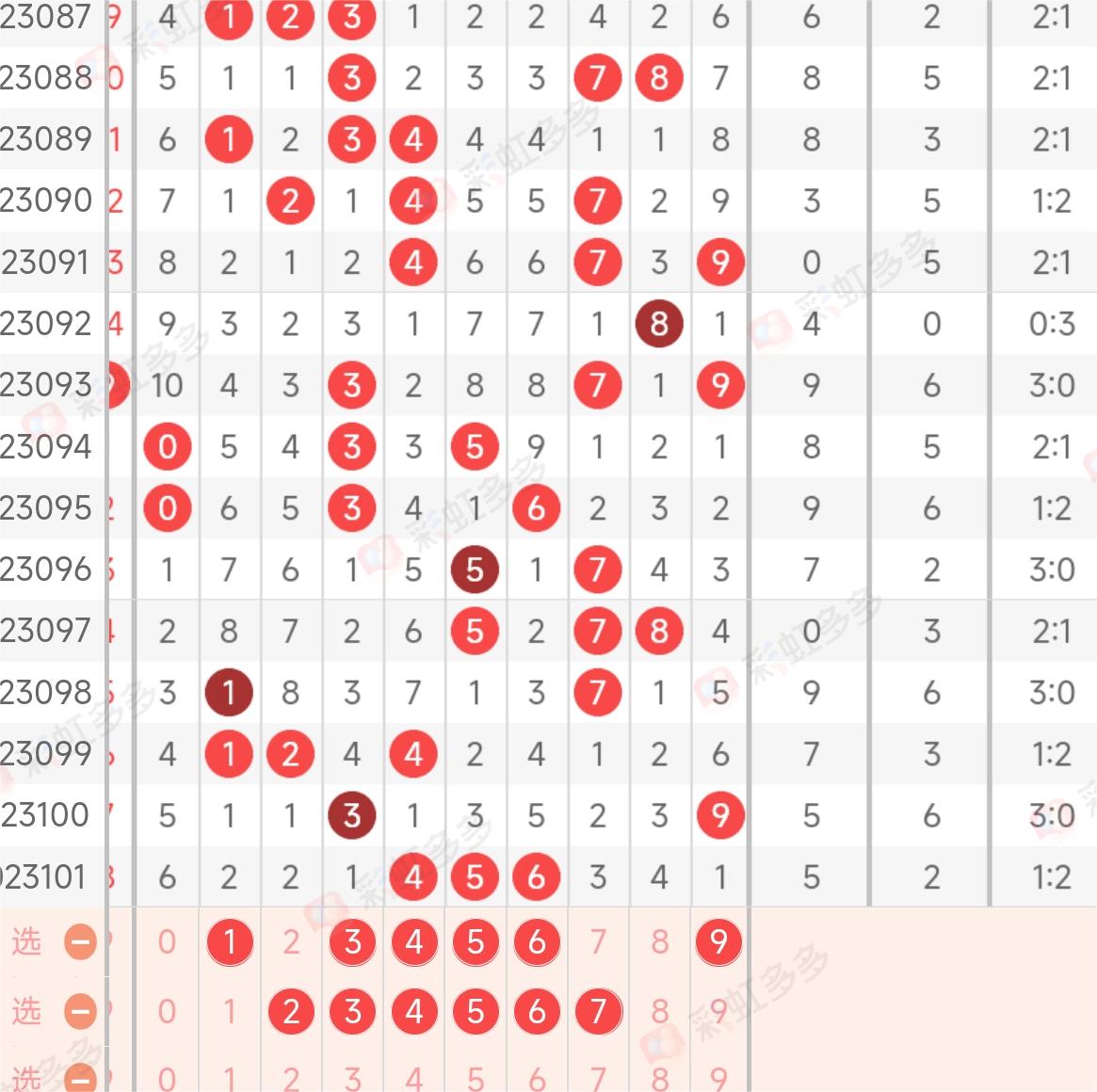 近期号码球7号出现三连出后遗漏了三期,号码球5号和1号以及3号近期都出现过当期重码,575 117 393 本期号码球7号有一定的概率出现!2023091期和2023093期号码球9号也是仅隔一期就出现!