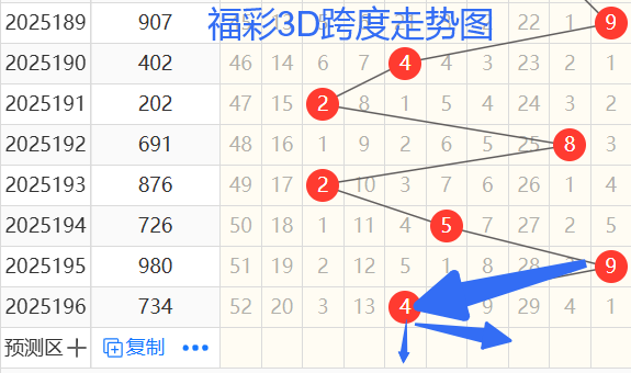 依次是82594跨度,按照路数转换关系来看,那么跨度我们暂定0369147跨,本期个人比较看好 4 6 7跨。