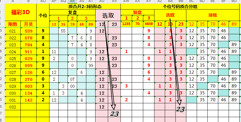 选取:结合图表中标注的代码(如1/2/3)及并集码(如12/13/23),研判临期可能的候选范围;