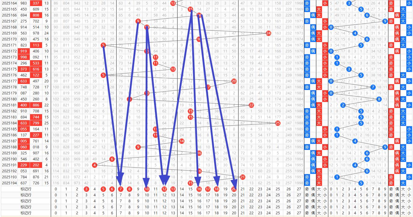 和值预判 - 和值:上期和值为15,处于近期和值波动区间4-21之内。195期关注和值5.6.7.8.10.12.13.关注和值12.遗漏74期
