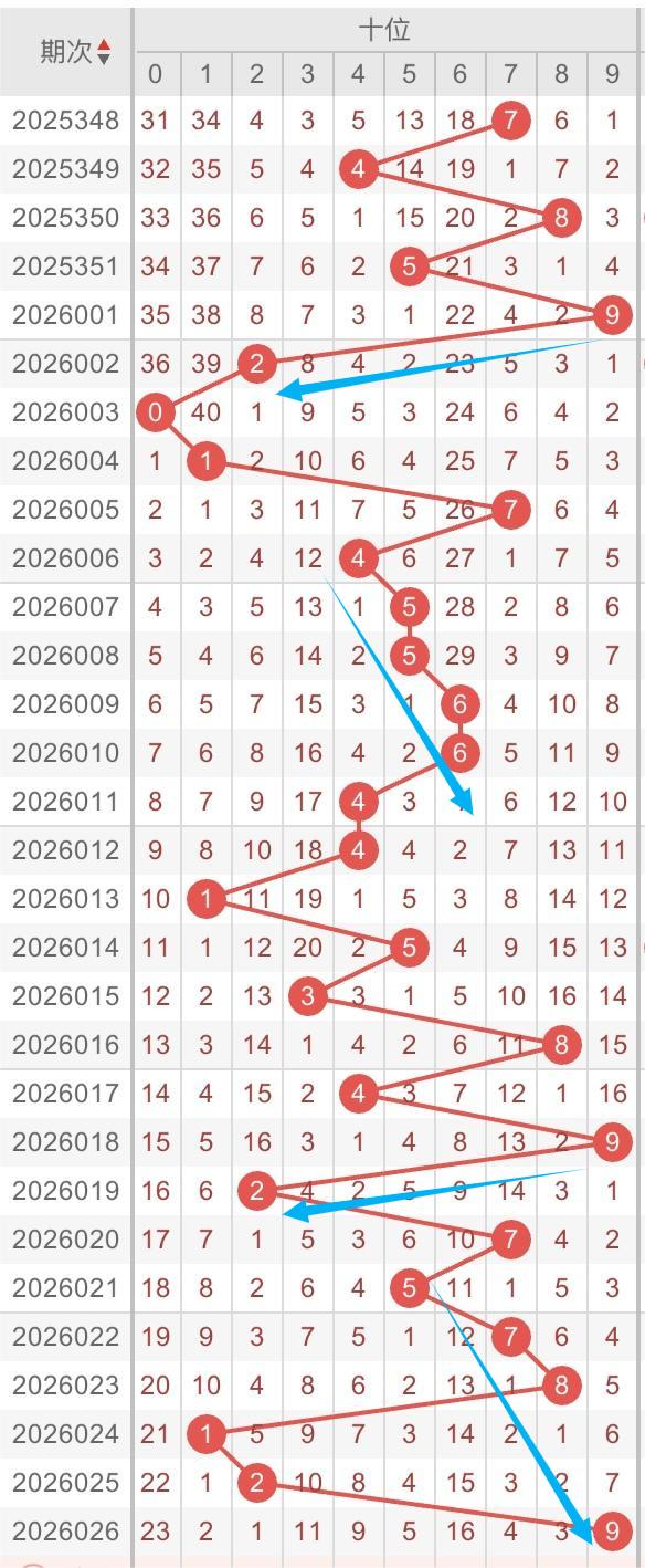 以近30期十位的走势形态分析:斜连、跨度形态多次出现。例如:数字4-5-6/7-8-9斜连开出,数字9-2/2-9大跨度开出。本期重点关注:数字7-8-9斜连开出,同时关注数字9-4/9-2跨度开出。个人分析,仅供参考。