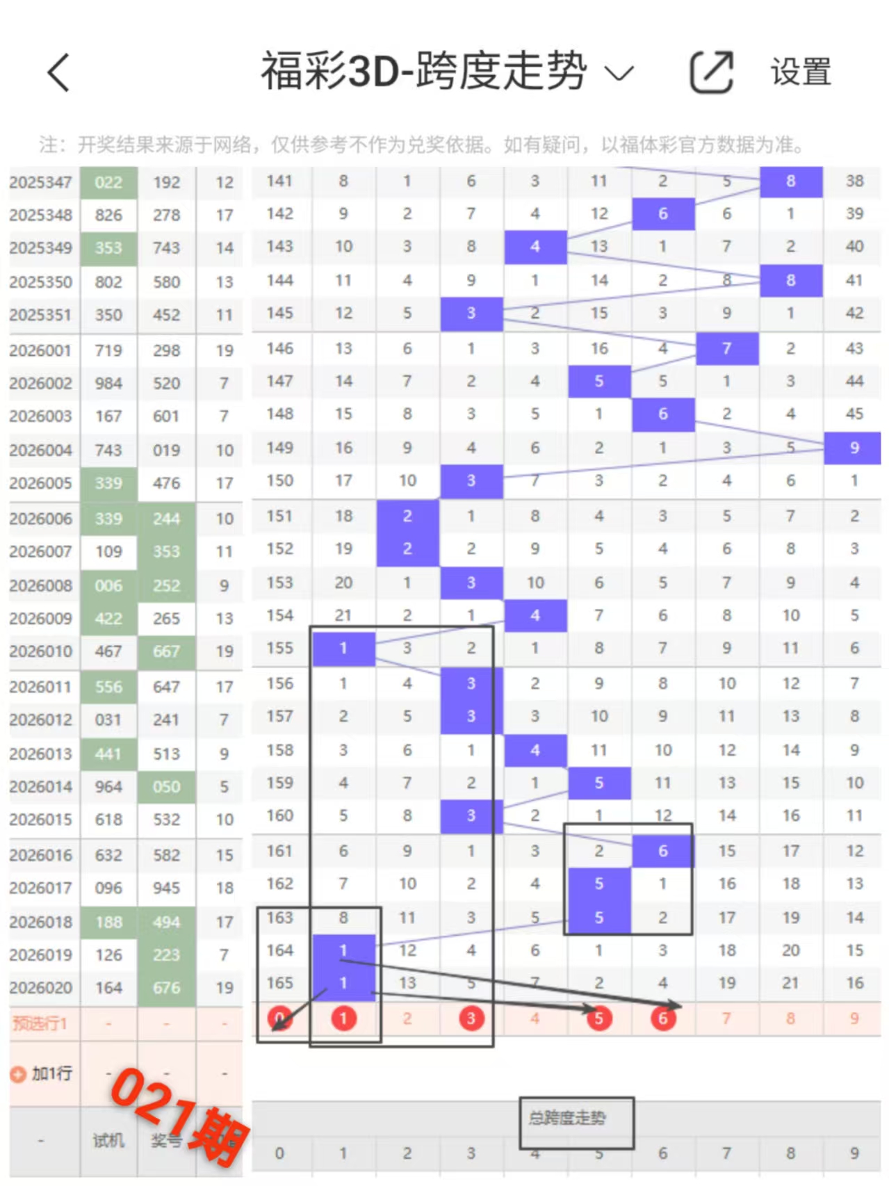 上期复盘:上期开奖号676,组三形态,和值19,跨度1,1个奇数2个偶数,上期试机号164。(统计试机号这个数据是因为咱们有些小技巧可以从试机号里面选取出胆码的,在一定的概率上是能提高中奖率的。)