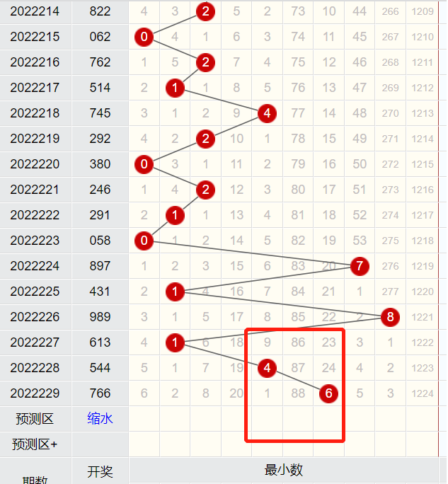 通过上图来看,可以发现228期最小数字是4,229期最小数字是6,那么它们之间有个数字就是5了,这个最小数字5遗漏是88期,已经有了作为最小数字的标准了,如果参考这个数据,那么230期排三应该是全大数字组合,这条路也可以作为一个依据。有时候多条途径结合,拿到奖号会更加容易些,看看最近的运势吧。
