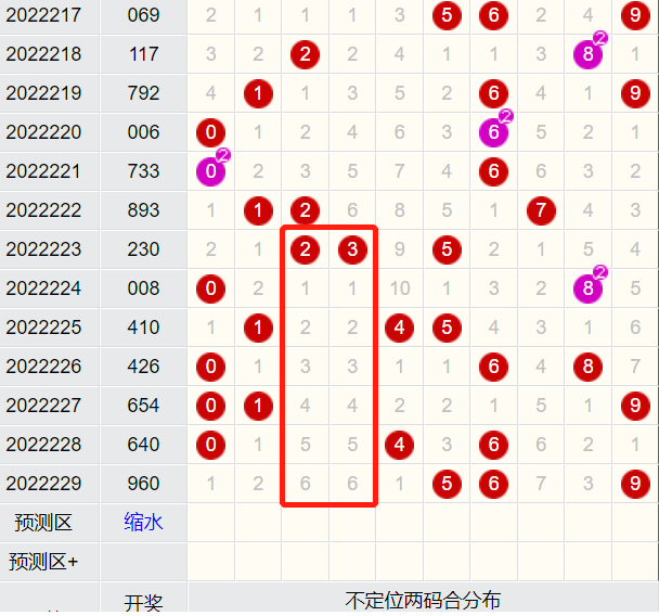 从上图中很清晰的就能看到近期福彩3D里非常缺少任意两码合为23的号码组合,大家可能对这个两码合23没什么概念,如果把它们转化成单选号码,那么它们一共是488注,这样就成功的排除了一大半废号,准确率非常高哦,如果不信230期开奖便知。